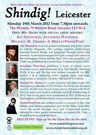 Jonathan Taylor for Crystal Clear Creators ,and Jane Commane and Matt Nunn for Nine Arches Press, are to be commended for assembling both such a strong cast of performers, and creating a relaxed easy ambience for them to perform in. Shindig next meets on the 21st May, 7.30pm start, free entry, sign up for an open mic slot on the night.