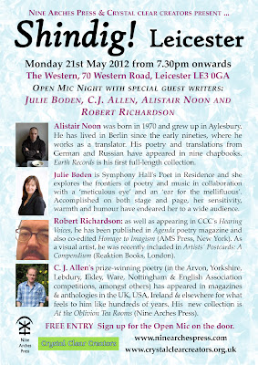 In a pre-show chat Crystal Clear Creator co-director Maria Taylor Shindig described Shindig to me as, “no ordinary open mic”, an aside which pretty much defines this event, and should be its strap-line. Once again Crystal Clear Creators and Nine Arches Press had assembled a strong and eclectic roster of featured poets and floor readers before another full room for this bi-monthly event, presented by Jane Commane and Jonathan Taylor.