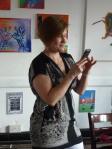 I always enjoy hearing new performers .Delphine de Noire was hitherto unknown to me, but made quite an impression. With her jet black hair, flowing black dress, bright red lipstick, and pronounced eye make- up, she clearly revels in an image that has something about the night swirling around her. She could easily have been transported from Andy Warhol’s Factory circa 1969, a world inhabited by the likes of Candy Darling, Nico , Lou Reed and the Velvet Underground. So I was wholly unsurprised when her first poem was entitled , Morphine Dream, then followed by Bathsheba. Dark, atmospheric and mysterious it was as if Jim Morrison and Grace Slick had been re-incarnated for a trippy poetic journey. I have no idea what much of it was about – but I loved it.
