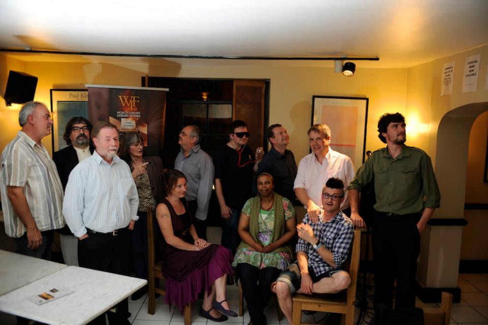 Polly Robinson is a luminary of the Worcester literary community and her writing, whether prose, or poetry, is always worth listening to. Her poem of a tube ride on a sticky day with its onomatopoeia driven structure is very satisfying, whilst Across the Timeless River, “ Five past six, light bright evening across the wrinkled river” does for the River Severn what Waterloo Sunset did for the Thames. Presenting short stories is no easy task. Andrew Owen used an innovative device with A Picture Tells a Thousand Words by bringing a graduation photo of himself, and then telling a story around it. It worked well, as did his Facebook inspired Like Mother like Daughter. Jeremy Holtom finished the section before the headline act with an intriguing extended performance. It was a little like watching footage of Jimi Hendrix at Woodstock, one minute you were with him, the next you were in another cosmos.