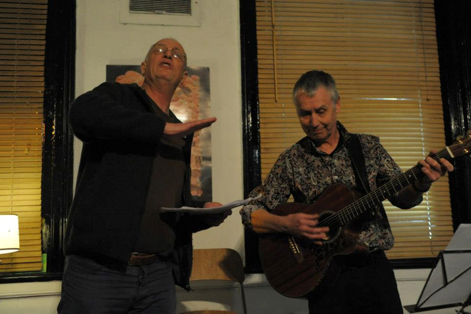 Co -organisers Sarah Tamar and Heather Wastie rounded off the open mic, the former with I love to love ( but my baby just loves to dance?), the latter with a trio of new pieces of which Brief Encounter (pull up to the bumper?) stood out. The musical denouement came fromThe Very Grimm Bros, Adrian and John Grimm, who had lowered the drawbridge from Grimm Castle to offer their customary satirical wisdom. Frankly Chris Huhne was a sitting target! They are always a joy to watch, only their Manorial duties preclude world domination.