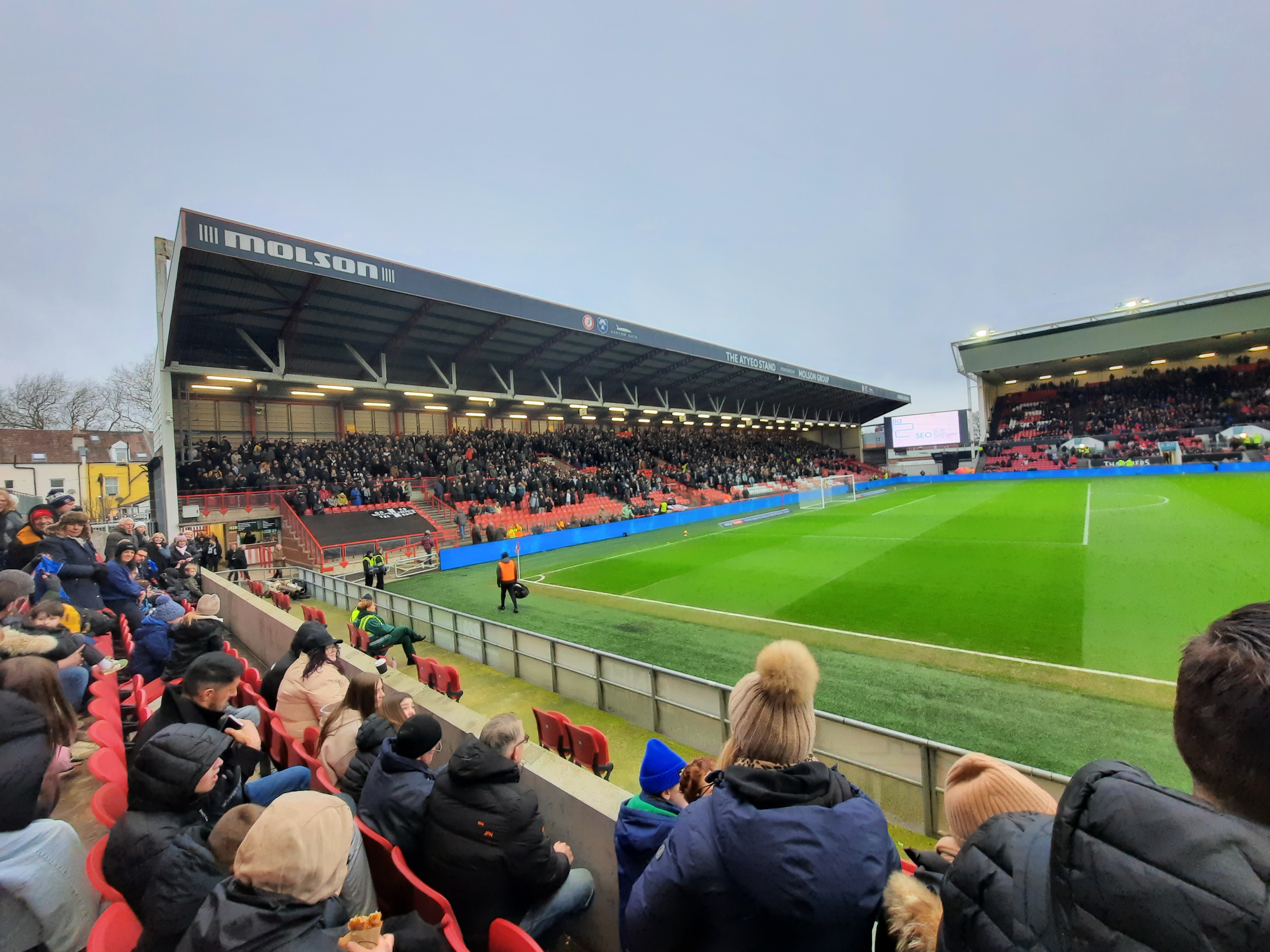 My first new ground of the year v Derby on a bleak, misty, bitterly  cold winter’s day. the four box stands impressed, particularly the Lansdown west stand where i was sat. Even the lower tier is elevated giving excellent views.. Derby brought 3500 fans to a 27000 seater in a 22000 crowd. The ground was fine, the 1-0 defeat for Derby was not.