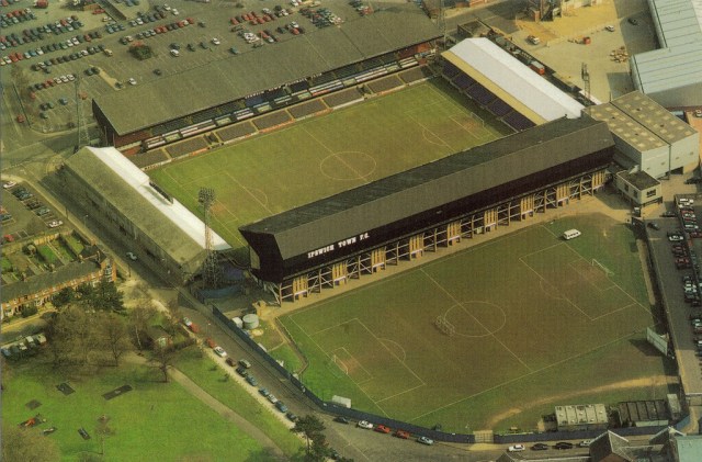I visited Ipswich regularly from the early 1980’s, lived there in the late 80’s/early 90’s and had a season ticket. So far, in my “memories” series I have recounted in detail the Abbey Stadium, Kenilworth Rd and Elland Rd. They were all very distinctive grounds, for very different reasons. Portman Rd was remarkable – for being unremarkable.