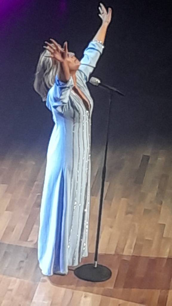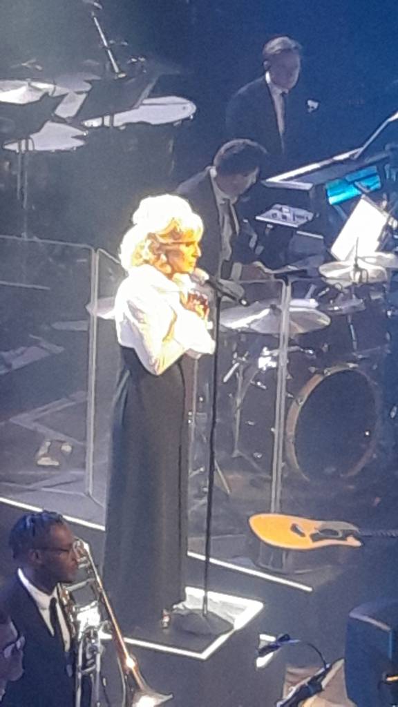 Her personal professional standing drew a large audience for an evening featuring a full orchestra backing, this was no heart hearted cheap cash in. Her arrival was presaged by an overture followed by a defiant rendition of “You Don’t Own me” looking fabulous in a luxurious pale blue evening gown she sang with no Dusty costuming, wig or make up. What followed was a consummate vocal performance which captivated an enthralled crowd.