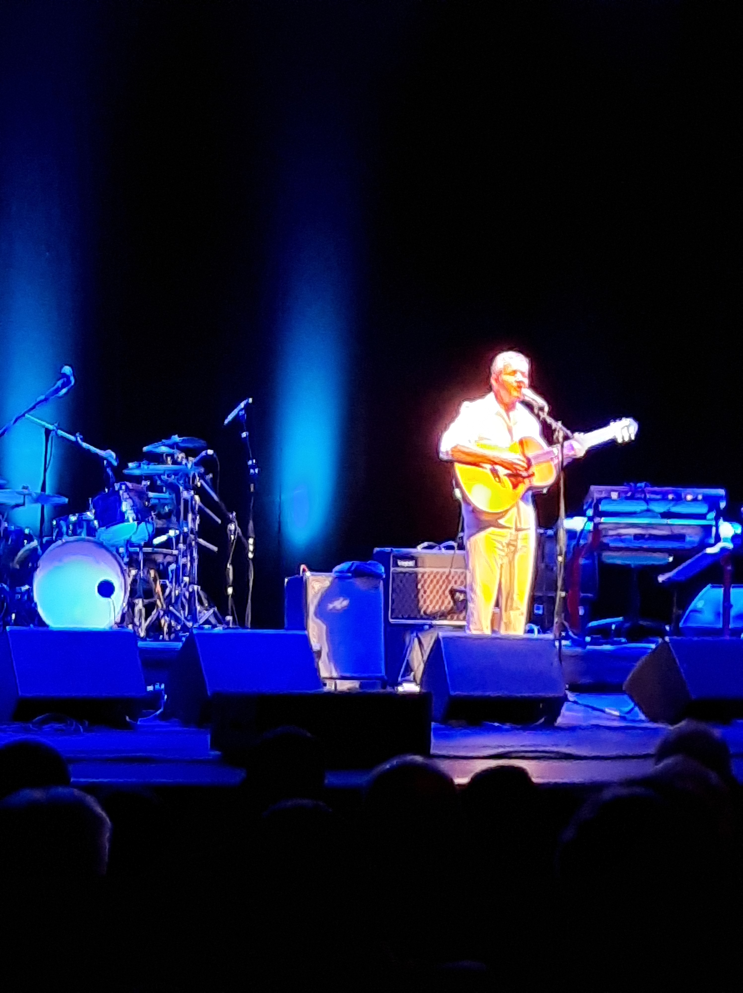 I first saw Lloyd with the Commotions at Wembley Arena when they were at the height of their fame. Beloved by the indy crowd and pushing into the Mainstream, but not quite cementing a place there. His status as a worthy singer songwriter was undeniable- his ability to front a rock band and all the songs was in question. The gig did nothing to answer the doubts. the best songs sounded great, the rest were lost in the unforgiving open spaces of the arena. Tonight the set was simple, no frills, just the music in one of the UK’s very best concert auditoriums