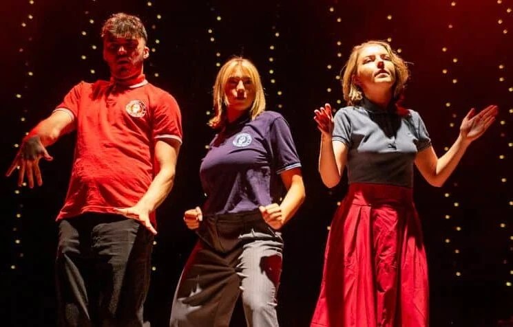 Godber directs brilliantly, The three actors create a busy fast-food restaurant crowded buses, and bustling night clubs . Martha Godber (, Chloe McDonald and Emilio Encinoso-Gil are all on stage throughout the performance, taking on further characters, and seemingly always dancing – keeping the play moving briskly and with brio. Elizabeth Godder produces.