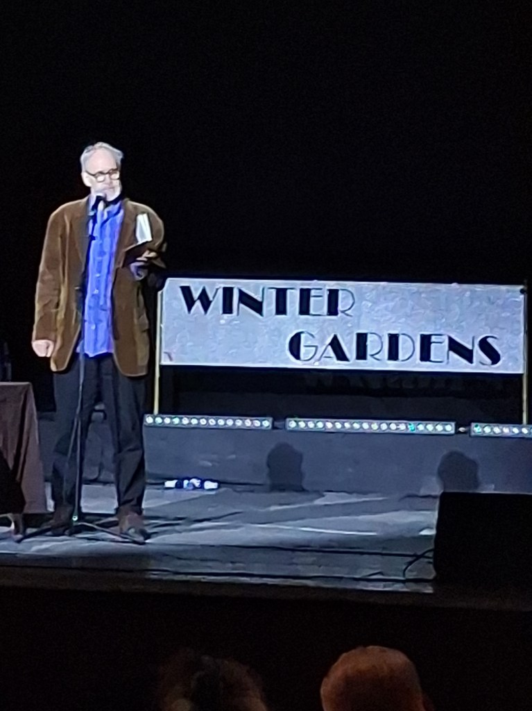 Henry Normal opened the Winter Gardens in the evening, urbane, loquacious and eloquent. Nigel Planer stole the evening. Very wittily he came on stage and informed us how much older we were all looking since he last saw us… he romped through a failed relationship with an older woman, two failed marriages and his return to the original woman in a wonderful, humble, self-deprecating performance that Neil would have been proud of.