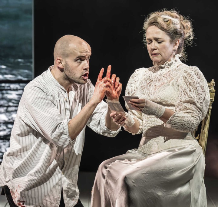 No expendse is spared, A roiling wake of waves down-stage (video design: Akhila Krishnan) makes the play seem to be sailing towards us, while the deck (designer: EsDevlin) sways and sometimes violently lurches. Will poison do for them- or seasickness?