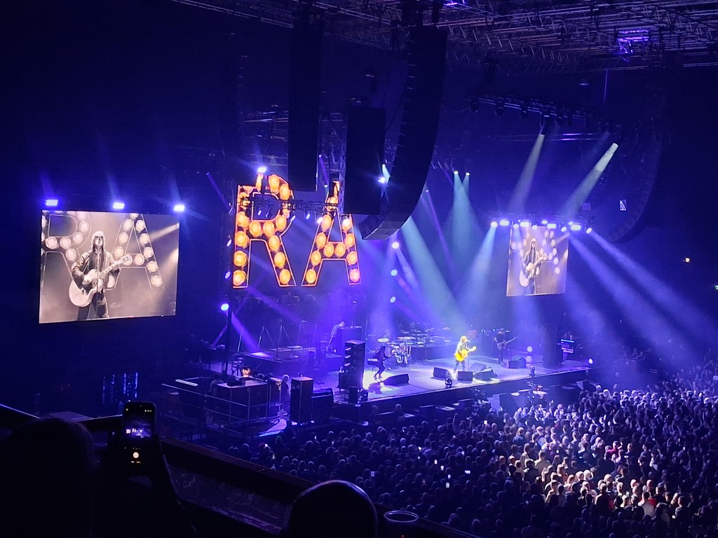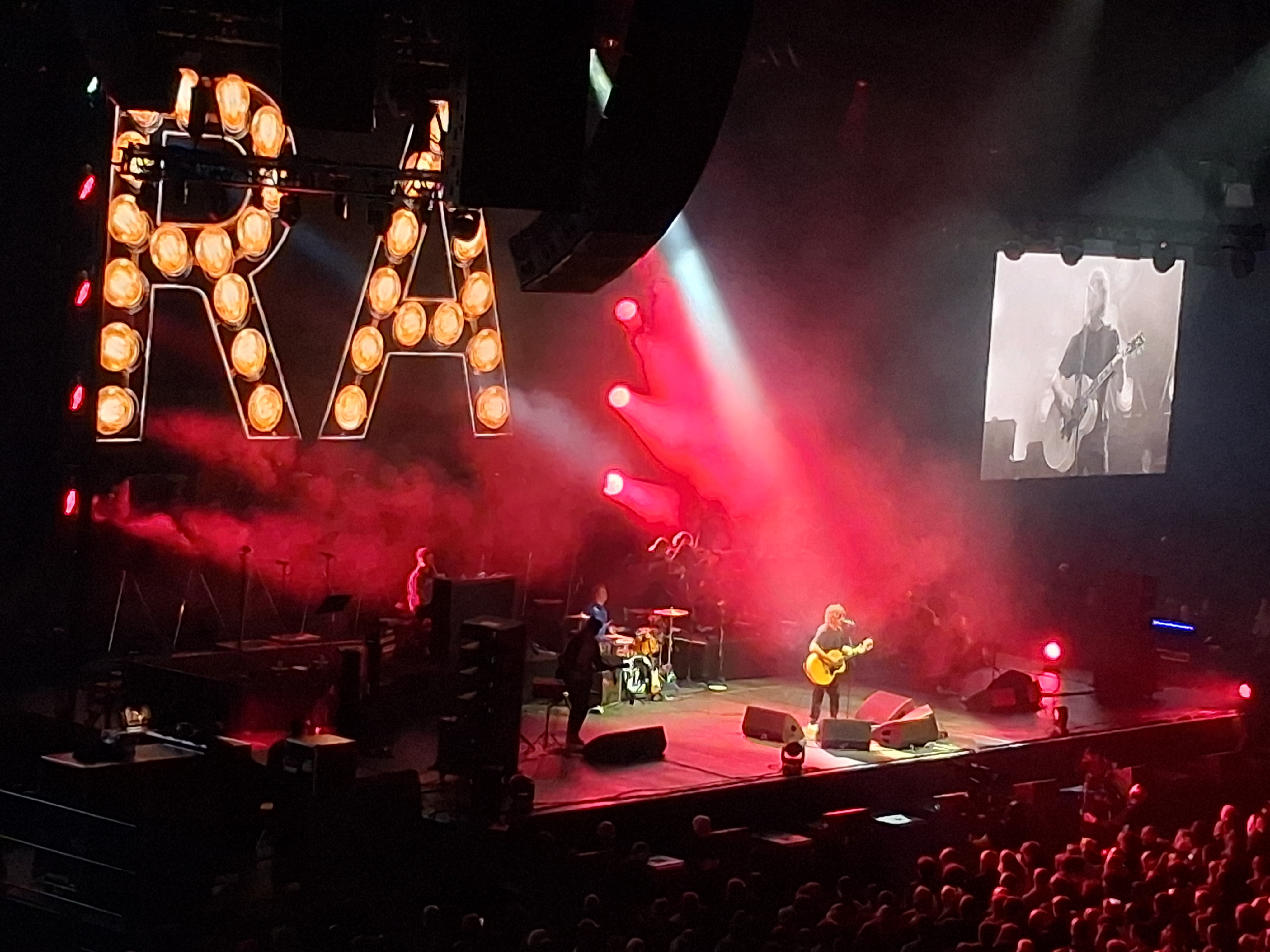 One thing he can never be accused of is modesty. Billed as Richard Ashcroft, not the Richard Ashcroft band, his initials are emblazoned in lights as the backdrop. He doesn’t introduce or name check his backing singers, the five piece string section, or band. This is him- and he pulls it off. No snazzy stage, no glitzy costumes. Just shades, jeans and t shirt and hoody for him.
