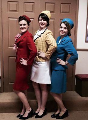 Director Christopher Waters’ task in producing this play was complicated by two very late cast changes. It is to the enormous credit of all involved that the identity of the late additions was not at all apparent. Jennifer Mears took on Bertha the housekeeper with a week to go – and is an absolute delight. Laconic, droll, world – weary, and acerbic, she shuffles whilst the other girls shimmy, and steals the show whenever she appears. Sarah Carter only had two weeks longer to get up to speed as TWA hostess Gloria. Flamboyant, brash, man-eating and sassy, her confident performance was a delight. Representing Lufthansa is Phebe Jackson as Gretchen. As well as being beautiful, she has presence , enabling her to play the Teutonic stereotype with ease. The physical jousting with Robert was particularly pleasing. Third fiancé aboard is Katrina Ann Foster, Ait Italia’s Gabriella, who revelled in her sex kitten role, coquettish, sexy and …Italian.